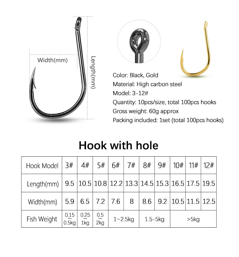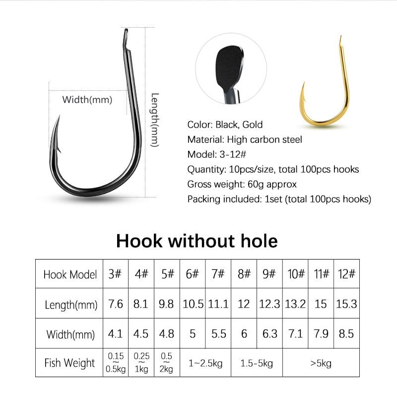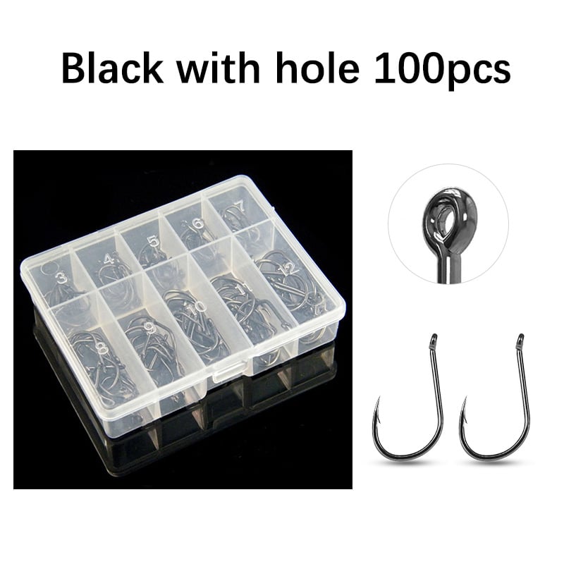 Mosodo 100 pcs Fishing Hooks Set 3-12# Barbed Hook Carp Fishhooks