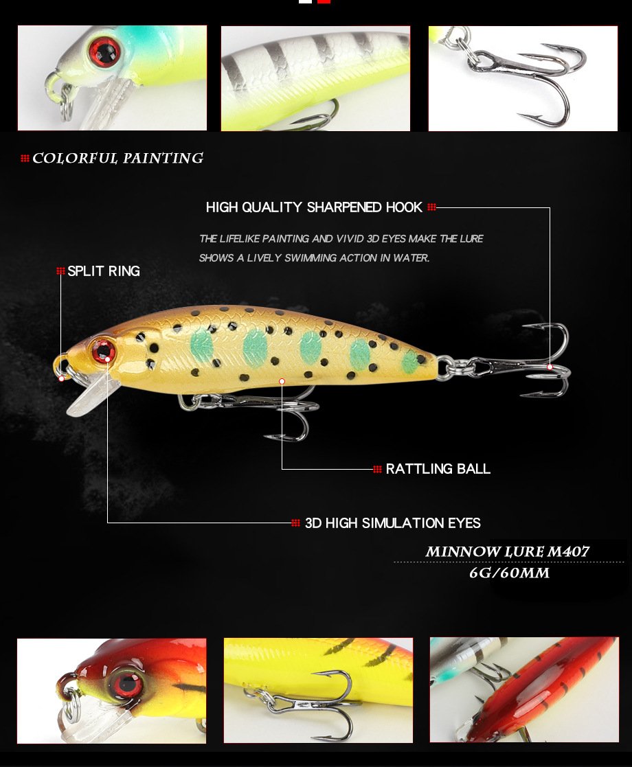 6cm57g Floating Mino Lure Fresh Water Topmouth Culter Weever Mandarin Fish Lure Simulation Bait M407